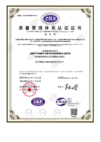 公司遵循ISO 9001/ISO13485国际标准质量管理体系,确保从产品设计、原材料采购、装配/调试、售后服务等,每一个环节都受到严格监控和管理,从而确保产品质量的稳定性和一致性。